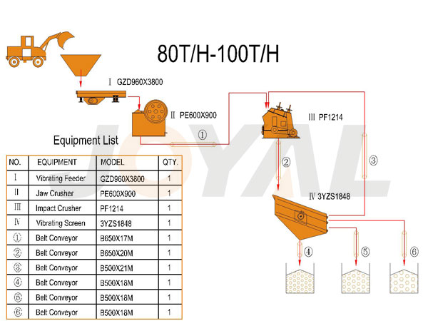 www.17.com礦機的80-100TPH 鄂破/反擊破整套石料生產設備(bèi)主要由GZD960X3800振動給料機、一級(jí)破碎PE600X900顎式破碎機、二級(jí)破PF1214反擊式破碎機、3YZS1848振動篩和配套膠(jiāo)帶輸送機、電控係統等(děng)組成。可對石(shí)灰石、大理石、花崗岩、玄武岩、河卵石等(děng)物料進行破碎、篩(shāi)分,生產多種粒度級別的建設用(yòng)砂石料。可根據客戶對石料規格、產量、石(shí)料用途的要求,為客戶提供合理、經濟的設(shè)備配置方案。